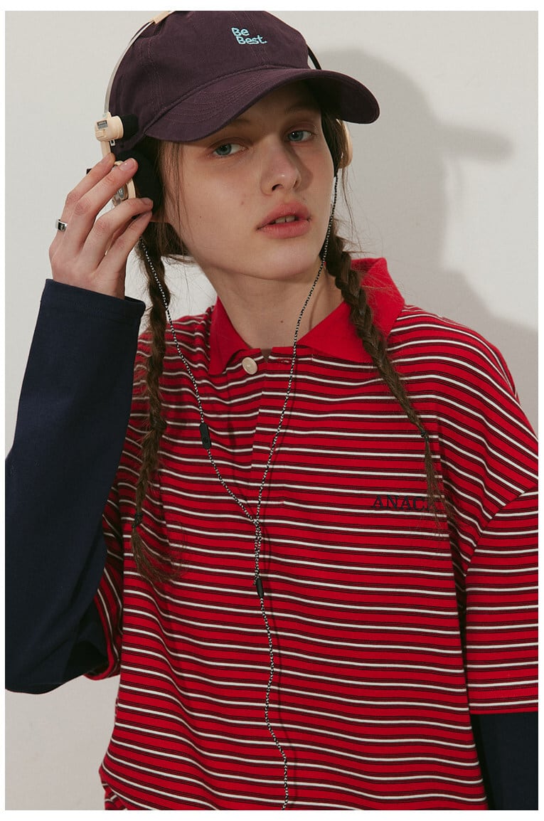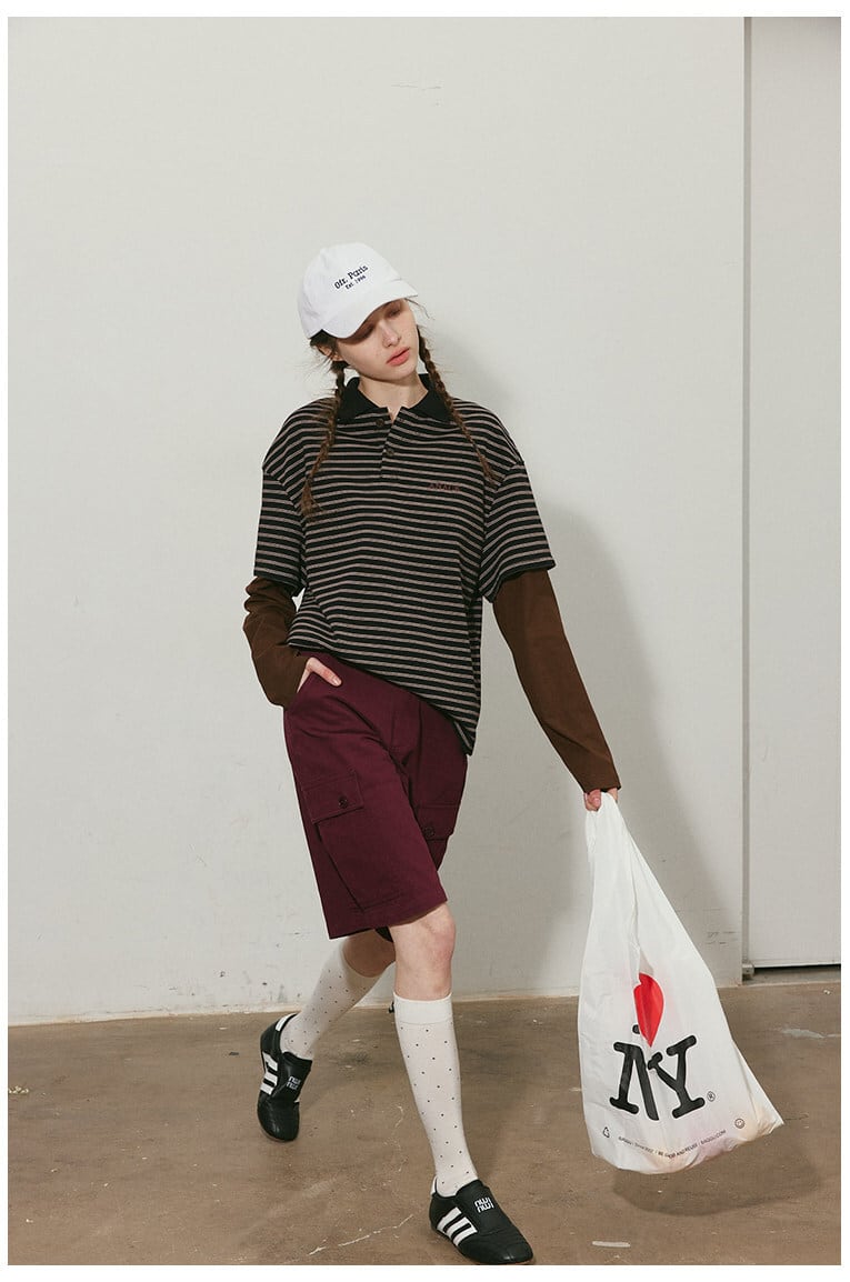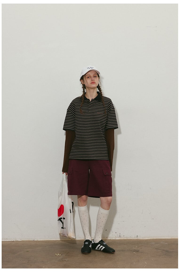 レトロな雰囲気のボーダー柄が印象的なポロトップス。