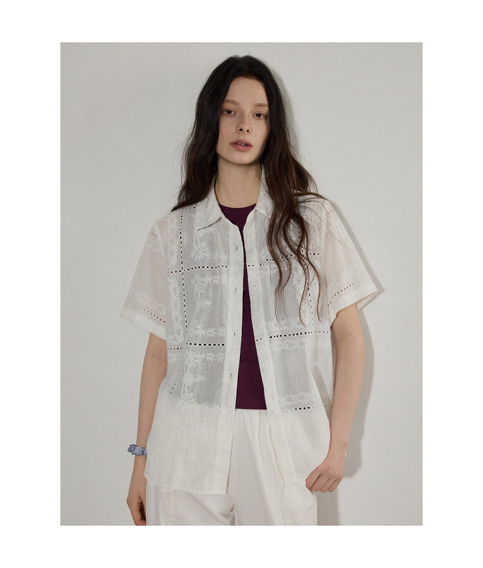 embroidery sheer shirt