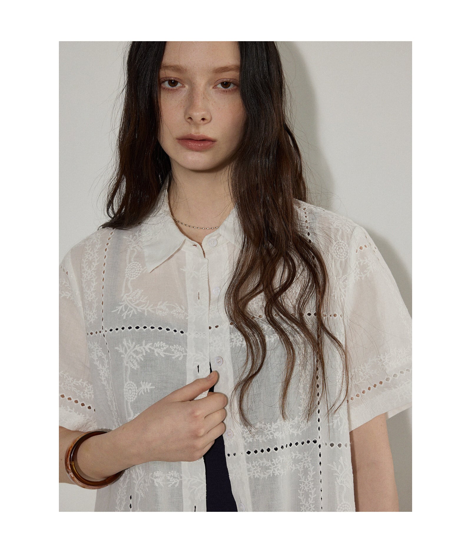 軽やかに抜け感をつくる、シアー刺繍シャツ。